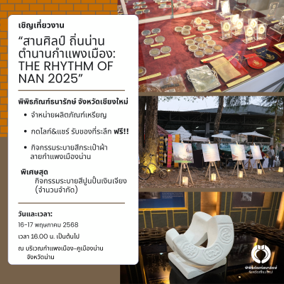 สอบถามข้อมูลเพิ่มเติมโทร 0 5322 4237 หรือทาง FB: พิพิธภัณฑ์ธนารักษ์ จังหวัดเชียงใหม่